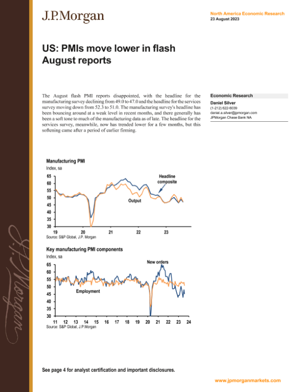 【J.P. Morgan】【20230823】FI-US PMIs move lower in flash August reports-7页
