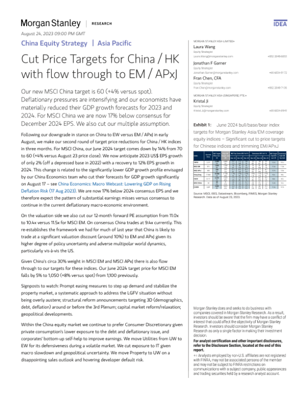 【Morgan Stanley】【20230823】China Equity Strategy Cut Price Targets for China / HK with flow through to EM / APxJ-20页