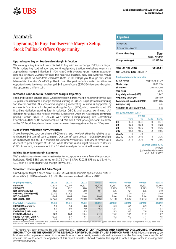 【Global Research and Evidence Lab】【20230822】Aramark _Upgrading to Buy Foodservice Margin Setup, Stock Pullback Offers Opportunity-29页