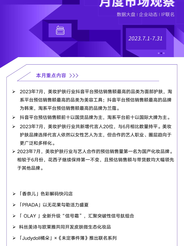 【艺恩ENDATA】【20230701】2023年7月美妆行业月度市场观察-8页