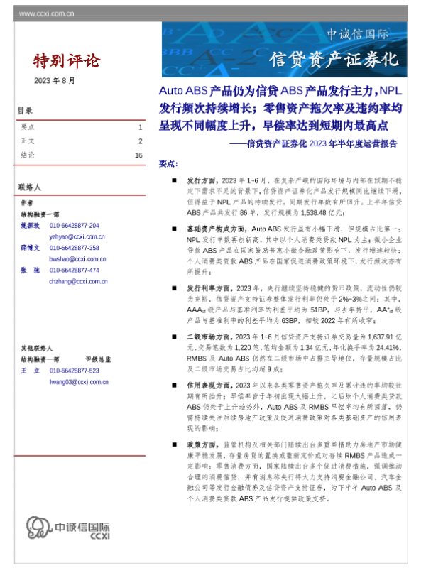 【中诚信国际】【202308】中诚信-信贷资产证券化2023年半年度运营报告-17页