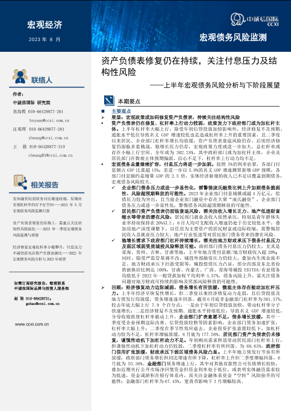 【中诚信国际】【202308】资产负债表修复仍在持续,关注付息压力及结构性风险——2023年上半年宏观债务风险监测与展望-12页