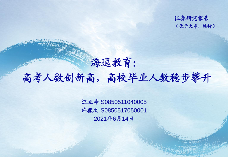 【海通证券】【20210614】教育行业:高考人数创新高,高校毕业人数稳步攀升-14页