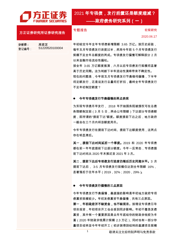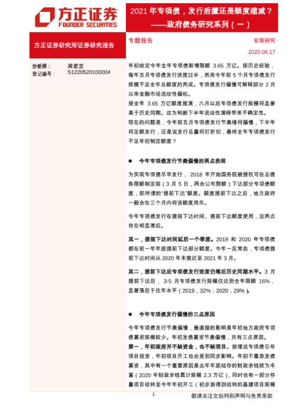【方正证券】【20210617】政府债务研究系列(一):2021年专项债,发行后置还是额度缩减?-19页