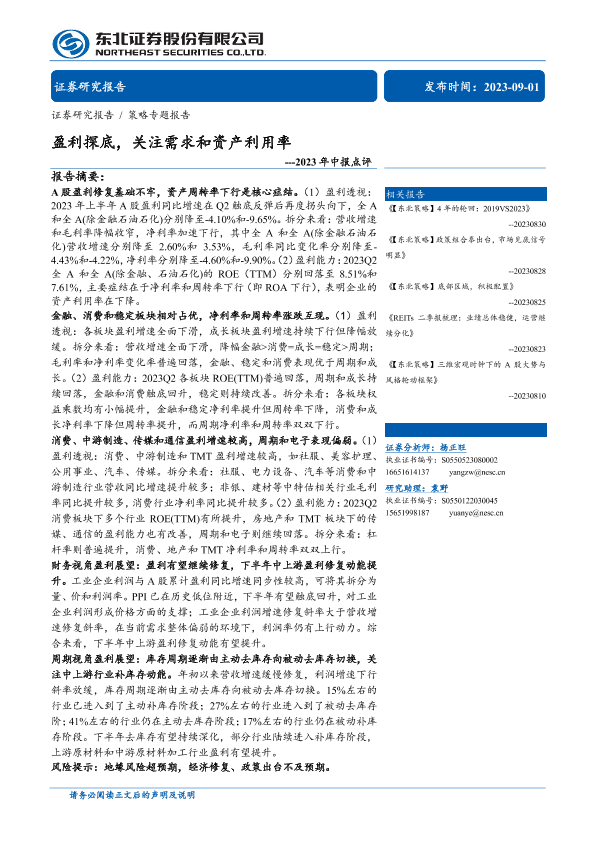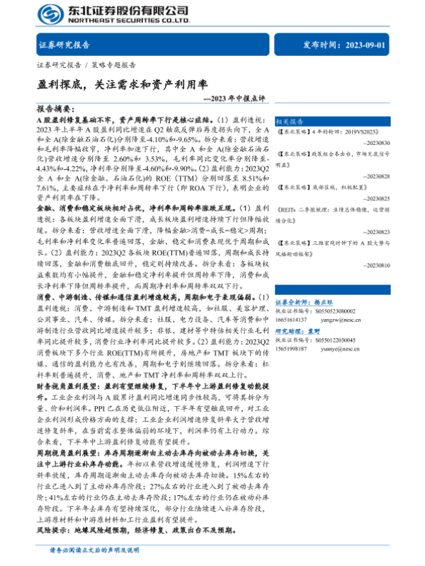 【东北证券】【20230901】2023年中报点评:盈利探底,关注需求和资产利用率-22页