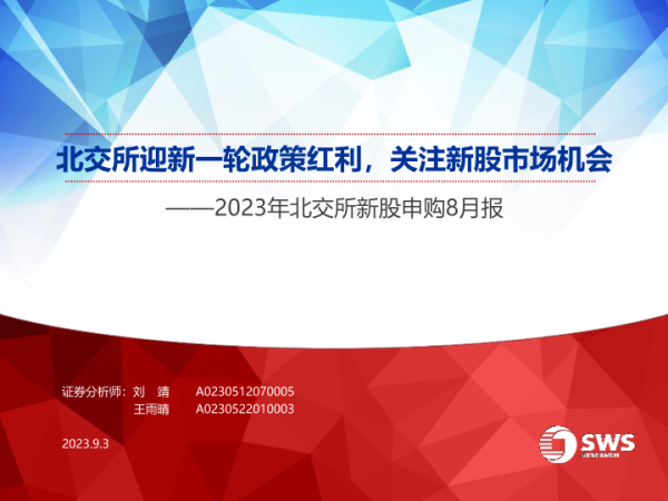 【申万宏源】【20230903】2023年北交所新股申购8月报:北交所迎新一轮政策红利,关注新股市场机会-24页