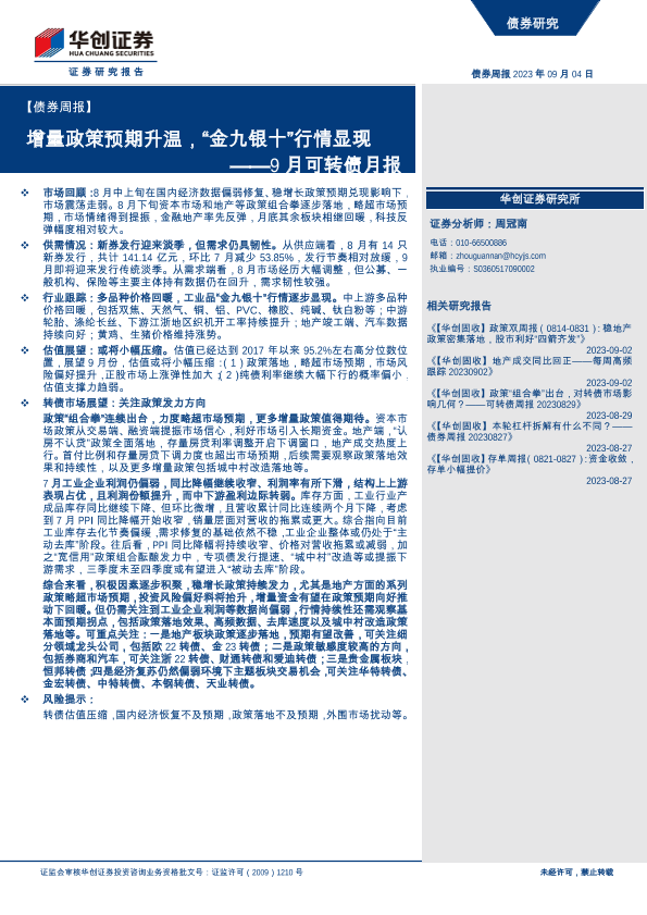 【华创证券】【20230904】9月可转债月报:增量政策预期升温,“金九银十”行情显现-36页