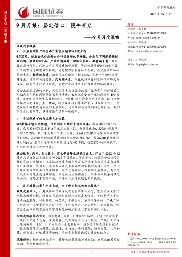 【国联证券】【20230903】9月月度策略:9月月报,坚定信心,慢牛开启-32页