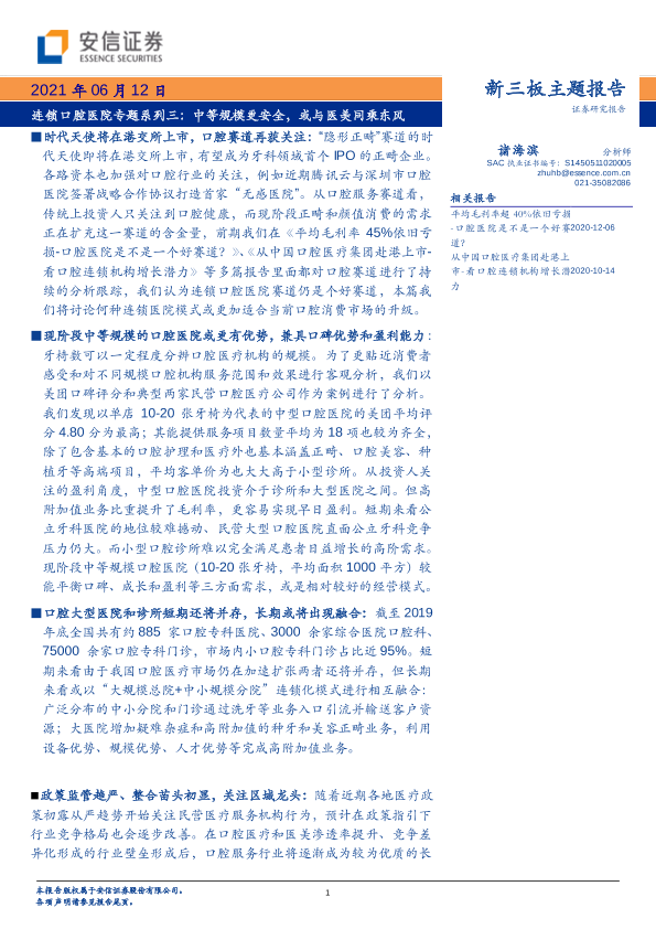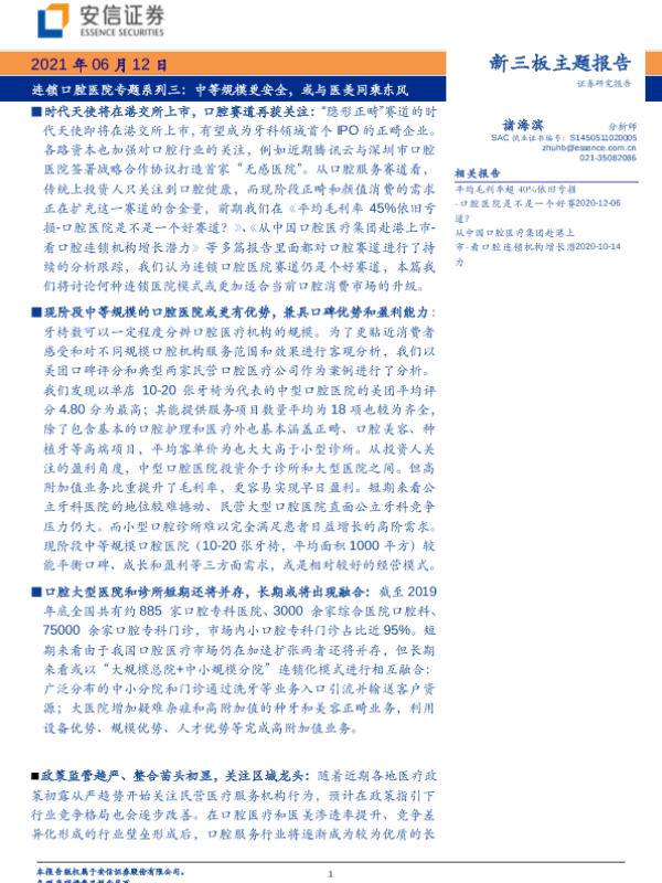 【安信证券】【20210612】新三板主题报告:连锁口腔医院专题系列三,中等规模更安全,或与医美同乘东风-25页