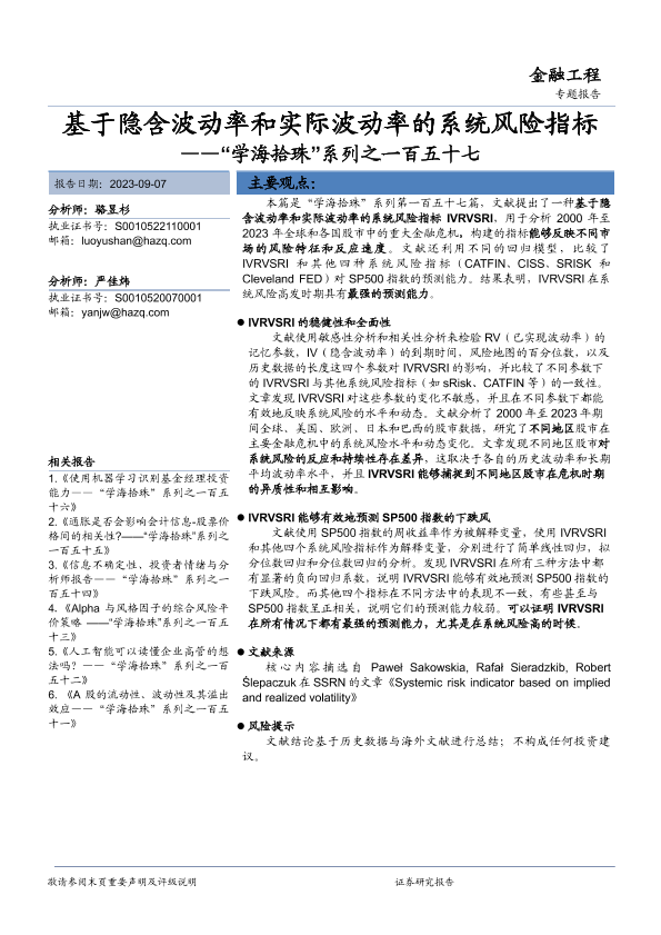 【华安证券】【20230907】基于隐含波动率和实际波动率的系统风险指标-26页
