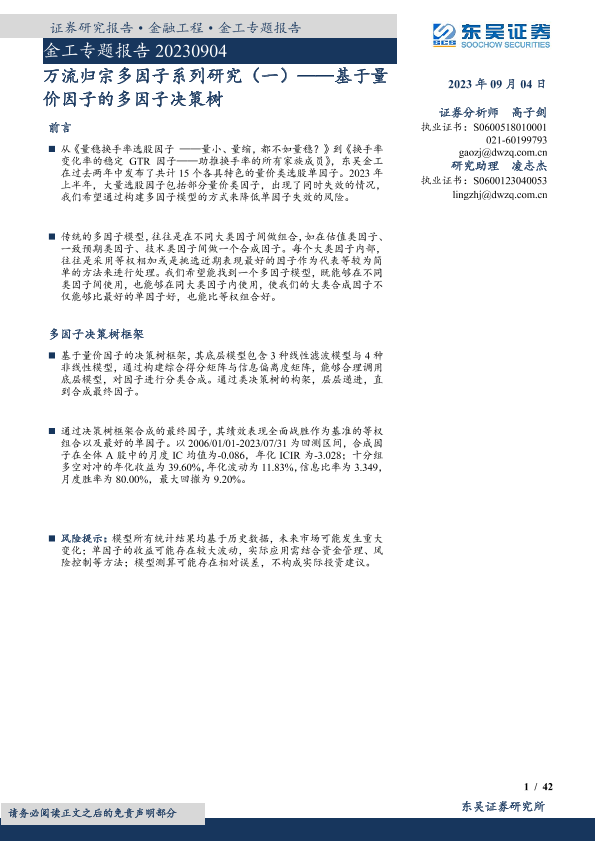 【东吴证券】【20230904】万流归宗多因子系列研究(一):基于量价因子的多因子决策树-42页