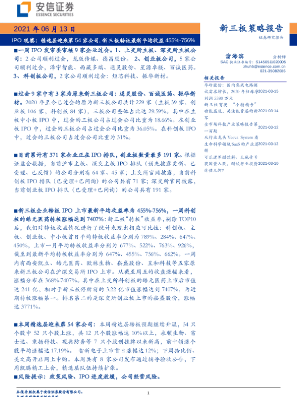 【安信证券】【20210613】新三板策略报告:IPO观察,精选层迎来第54家公司,新三板转板最新平均收益455%~756%-18页