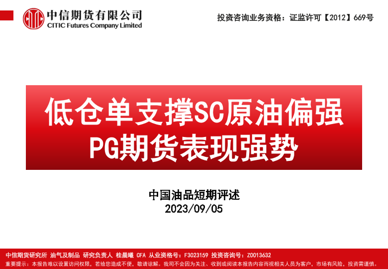 【中信期货】【20230905】中国油品短期评述:低仓单支撑SC原油偏强,PG期货表现强势-119页