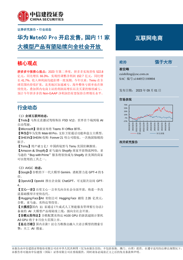 【中信建投证券】【20230901】互联网电商行业:华为Mate60 Pro开启发售,国内11家大模型产品有望陆续向全社会开放-88页