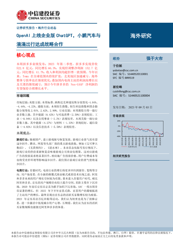 【中信建投证券】【20230903】互联网电商行业海外行业动态:OpenAI上线企业版ChatGPT,小鹏汽车与滴滴出行达成战略合作-24页