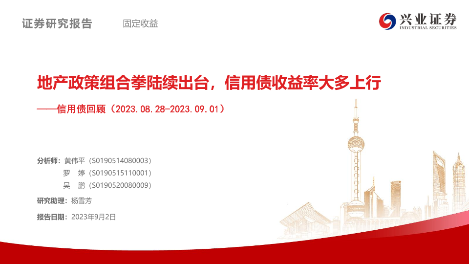 【兴业证券】【20230902】信用债回顾:地产政策组合拳陆续出台,信用债收益率大多上行-37页