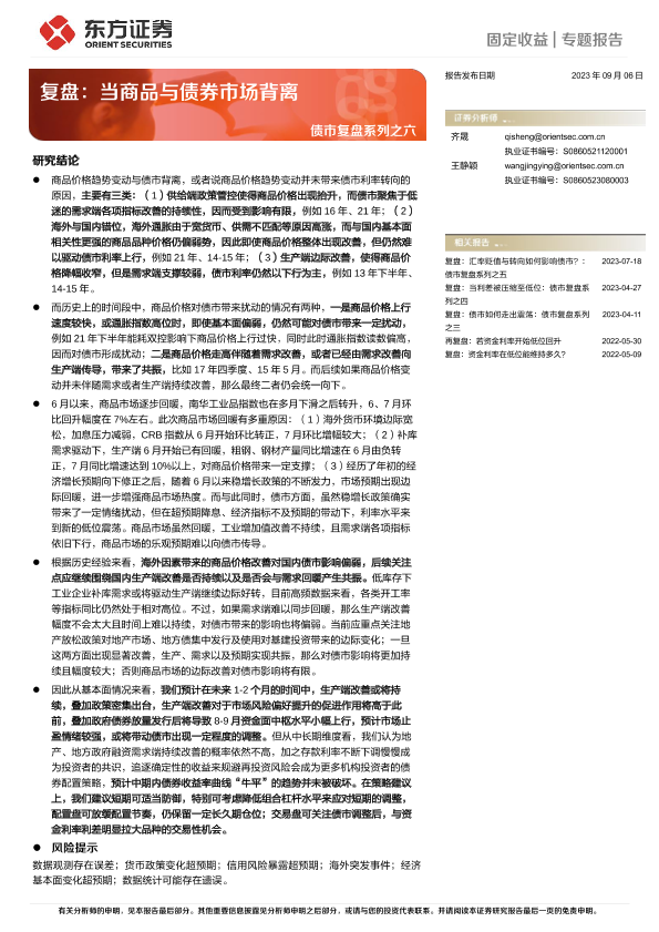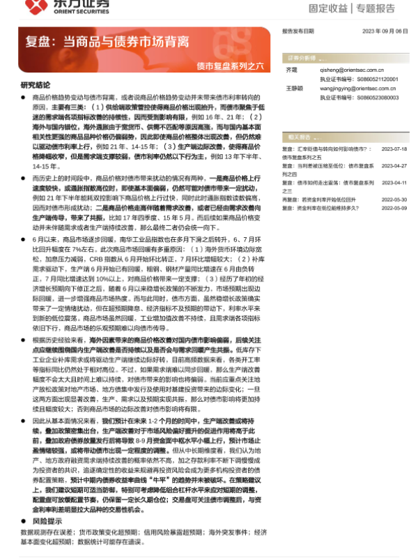 【东方证券】【20230906】债市复盘系列之六:复盘,当商品与债券市场背离-24页