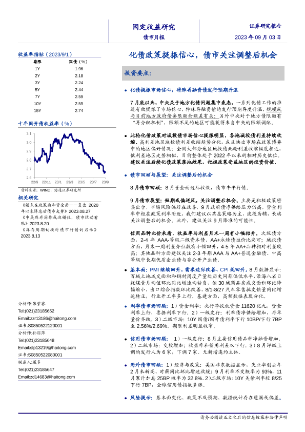 【海通证券】【20230903】债市月报:化债政策提振信心,债市关注调整后机会-30页