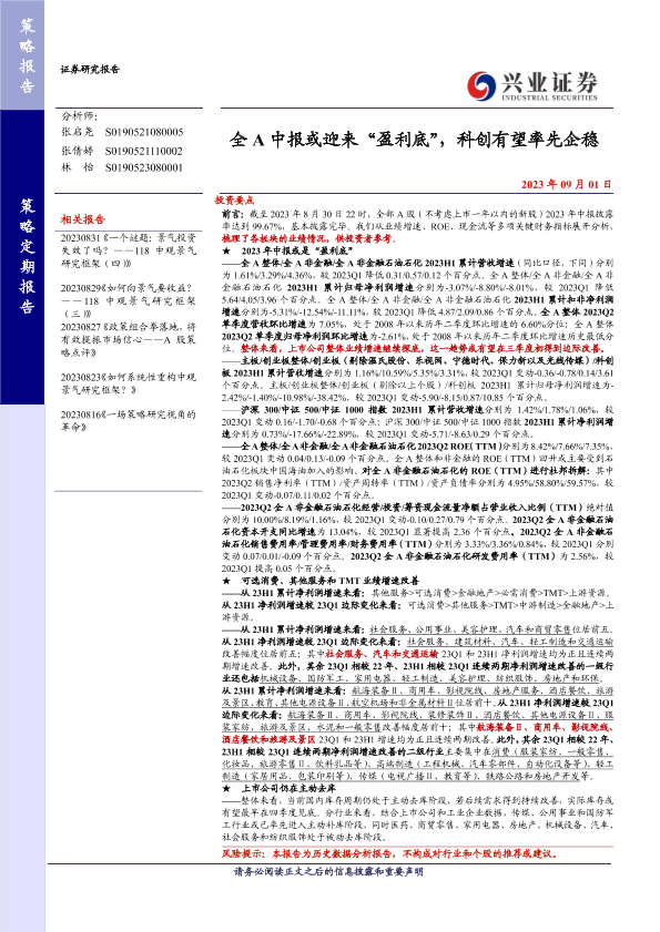【兴业证券】【20230901】全A中报或迎来“盈利底”,科创有望率先企稳-18页