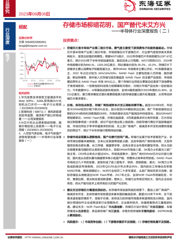 【东海证券】【20230906】存储市场柳暗花明,国产替代未艾方兴——半导体行业深度报告(二)-50页