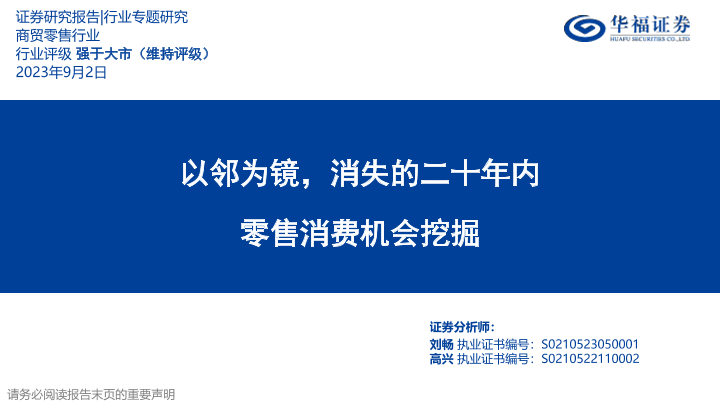 【华福证券】【20230902】商贸零售行业零售消费机会挖掘:以邻为镜,消失的二十年内-44页