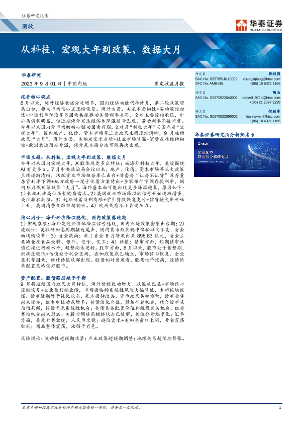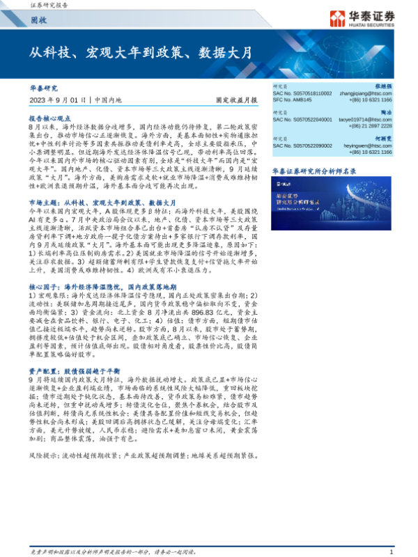 【华泰证券】【20230901】固定收益月报:从科技、宏观大年到政策、数据大月-30页