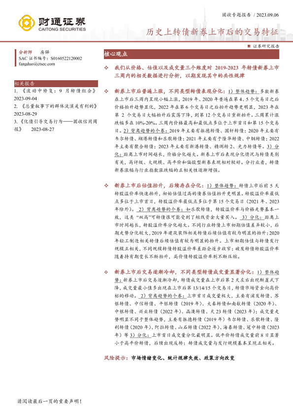 【财通证券】【20230906】历史上转债新券上市后的交易特征-55页