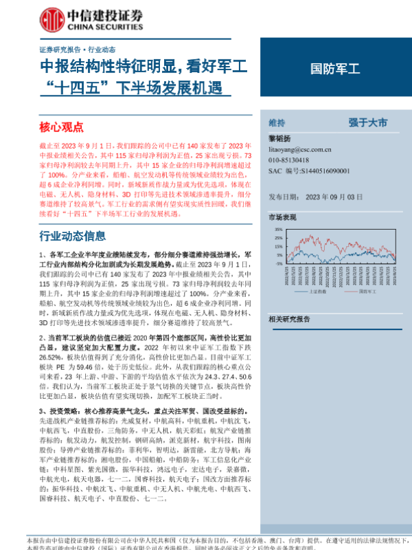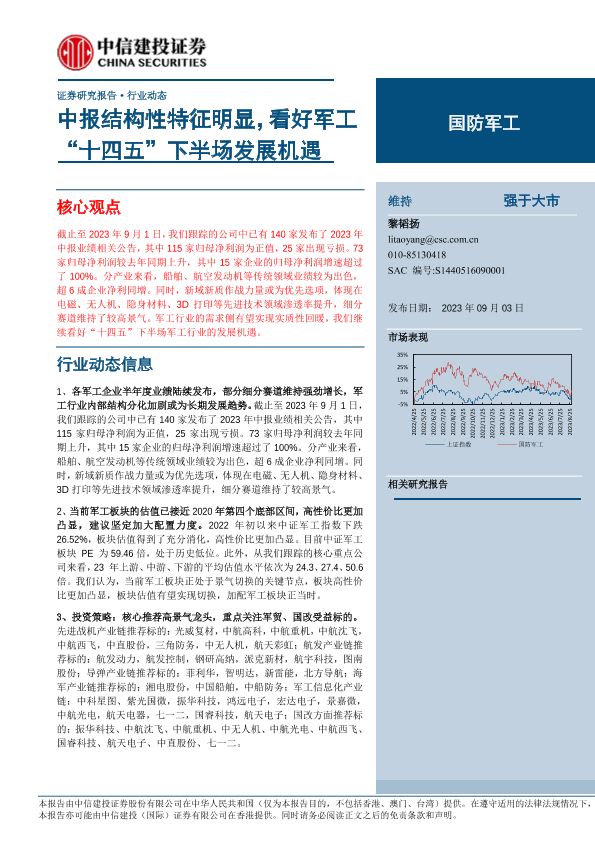 【中信建投证券】【20230903】国防军工行业:中报结构性特征明显,看好军工“十四五”下半场发展机遇-26页
