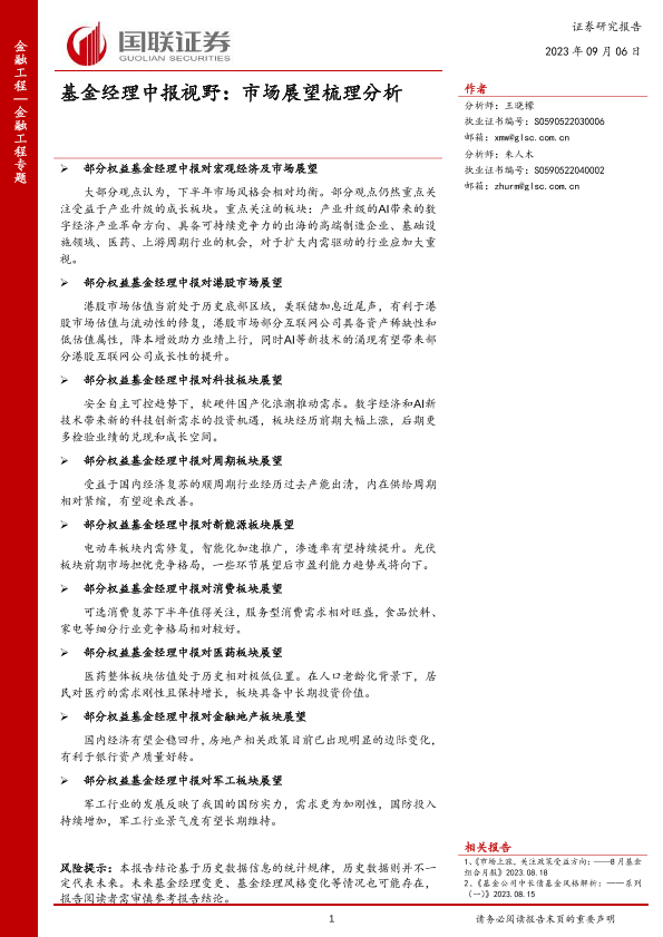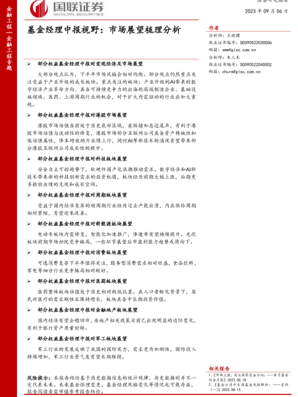 【国联证券】【20230906】基金经理中报视野:市场展望梳理分析-23页