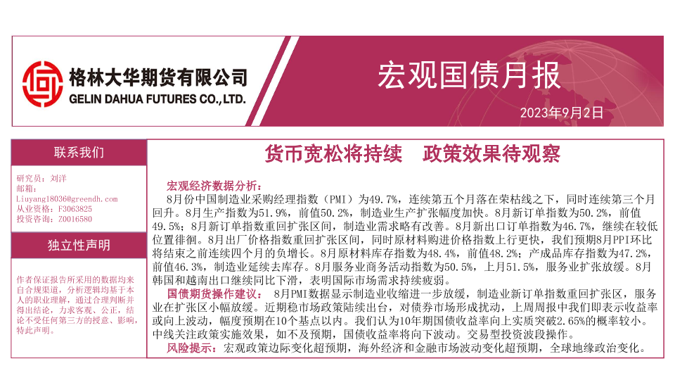 【格林大华期货】【20230902】宏观国债月报:货币宽松将持续,政策效果待观察-29页