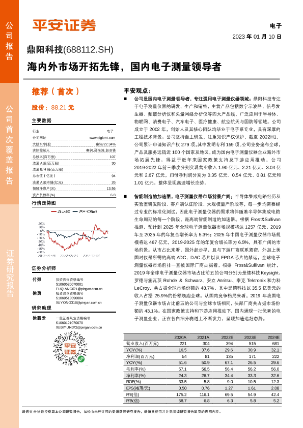 【平安证券】【20230110】鼎阳科技(688112)海内外市场开拓先锋,国内电子测量领导者-18页