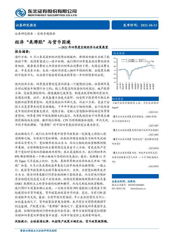 【东北证券】【20211013】2021年四季度宏观经济与政策展望:经济“类滞胀”与货币困境-49页
