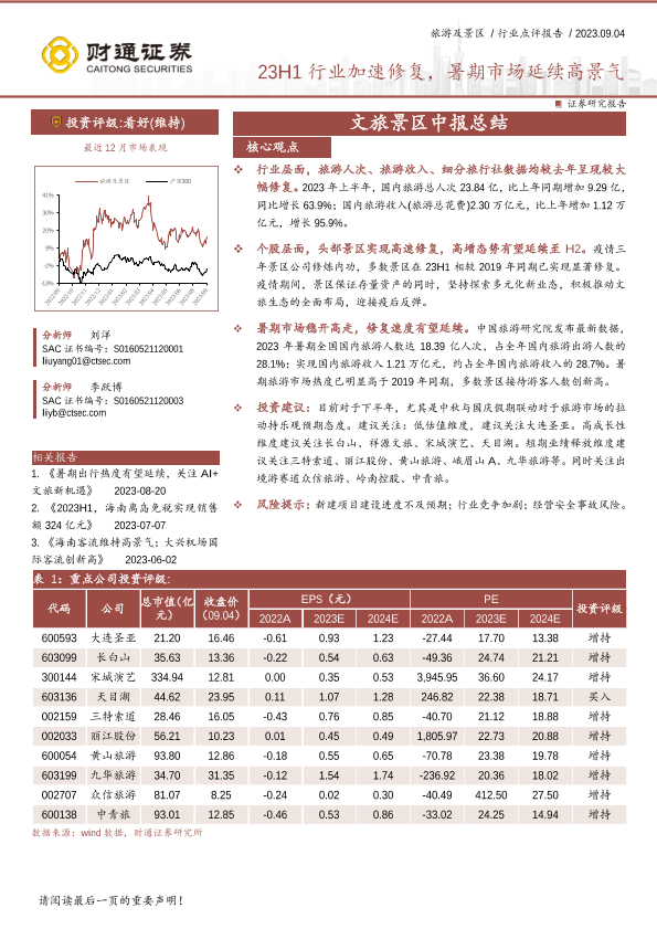 【财通证券】【20230904】文旅景区行业中报总结:23H1行业加速修复,暑期市场延续高景气-26页