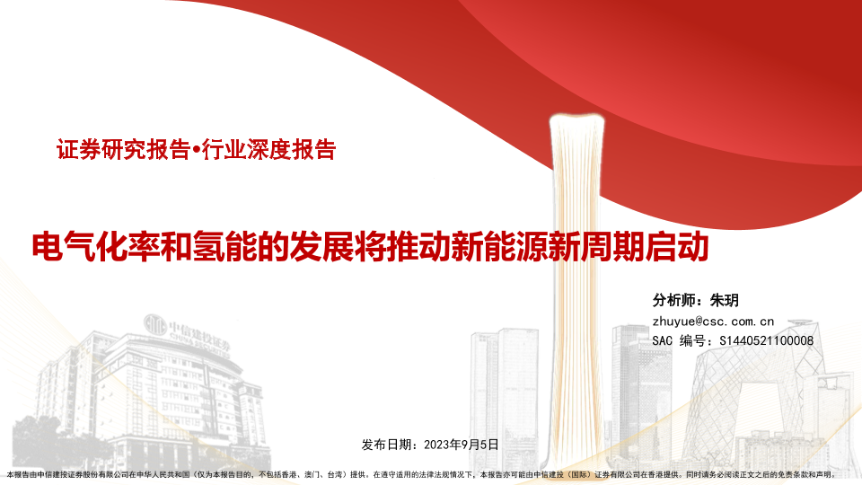 【中信建投证券】【20230905】新能源行业:电气化率和氢能的发展将推动新能源新周期启动-58页
