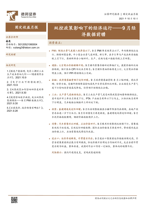 【德邦证券】【20211010】9月经济数据前瞻:双控政策影响下的经济运行-15页