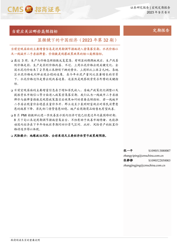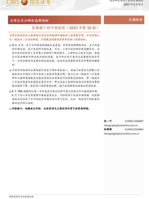 【海通证券】【20230906】显微镜下的中国经济(2023年第32期):当前应关注哪些高频指标-37页