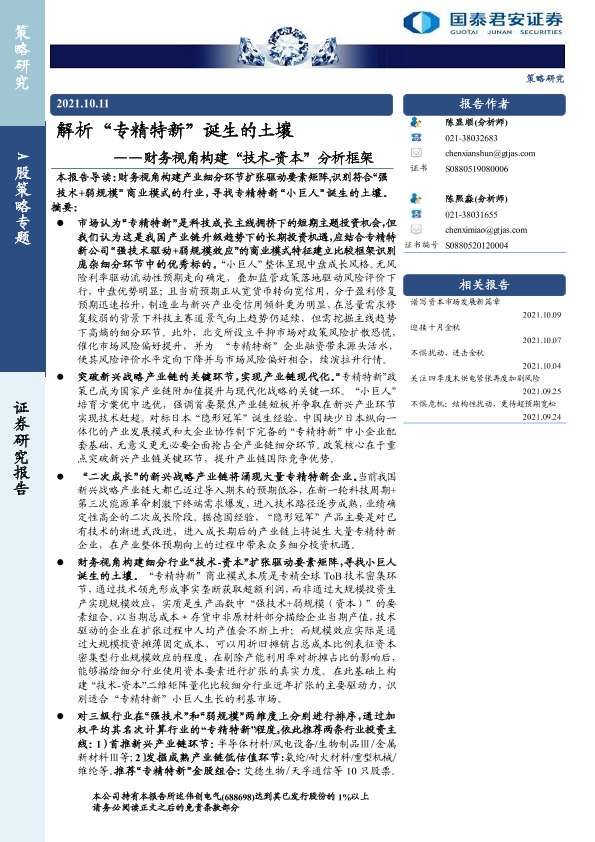 【国泰君安证券】【20211011】A股策略专题:财务视角构建“技术-资本”分析框架,解析“专精特新”诞生的土壤-21页