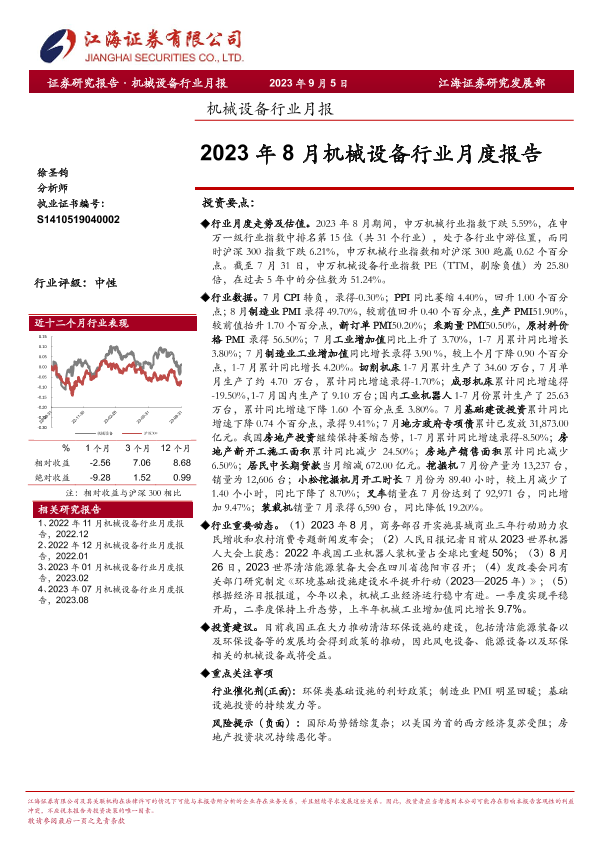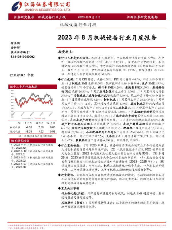 【江海证券】【20230905】机械设备行业月报:2023年8月机械设备行业月度报告-26页