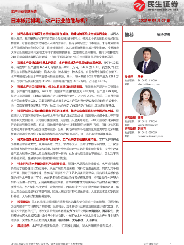 【民生证券】【20230907】水产行业专题报告:日本核污排海,水产行业的危与机?-22页