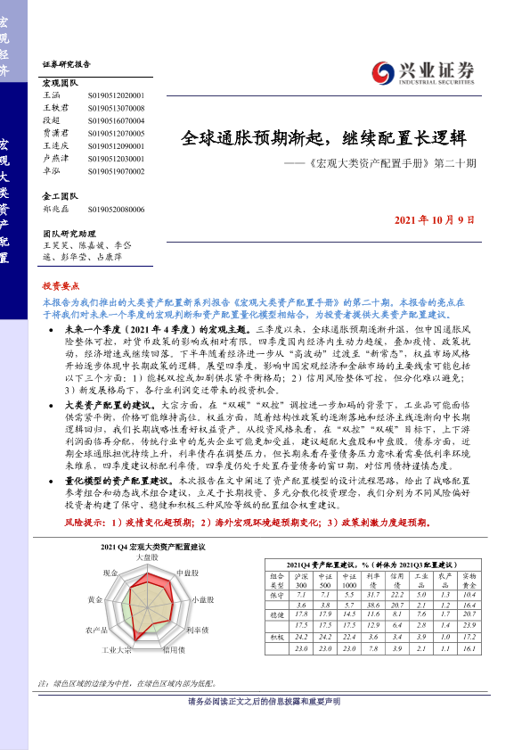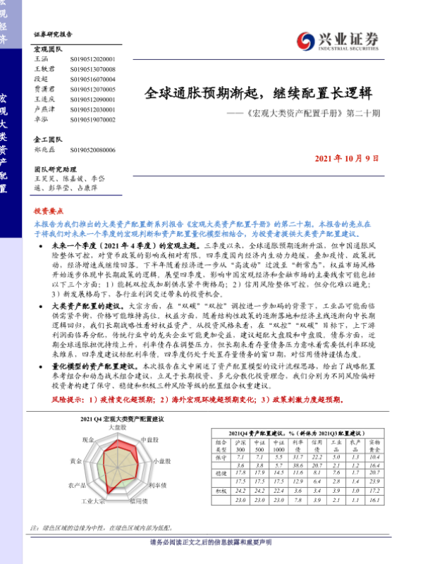 【兴业证券】【20211009】《宏观大类资产配置手册》第二十期:全球通胀预期渐起,继续配置长逻辑-32页