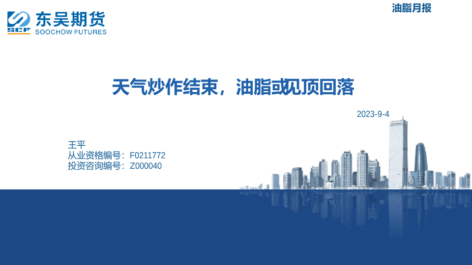 【东吴期货】【20230904】油脂月报:天气炒作结束,油脂戒见顶回落-22页