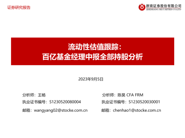 【浙商证券】【20230905】流动性估值跟踪:百亿基金经理中报全部持股分析-44页