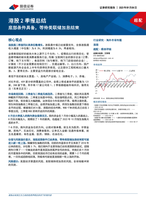 【国信证券】【20230908】港股2季报总结:底部条件具备,等待美联储加息结束-22页