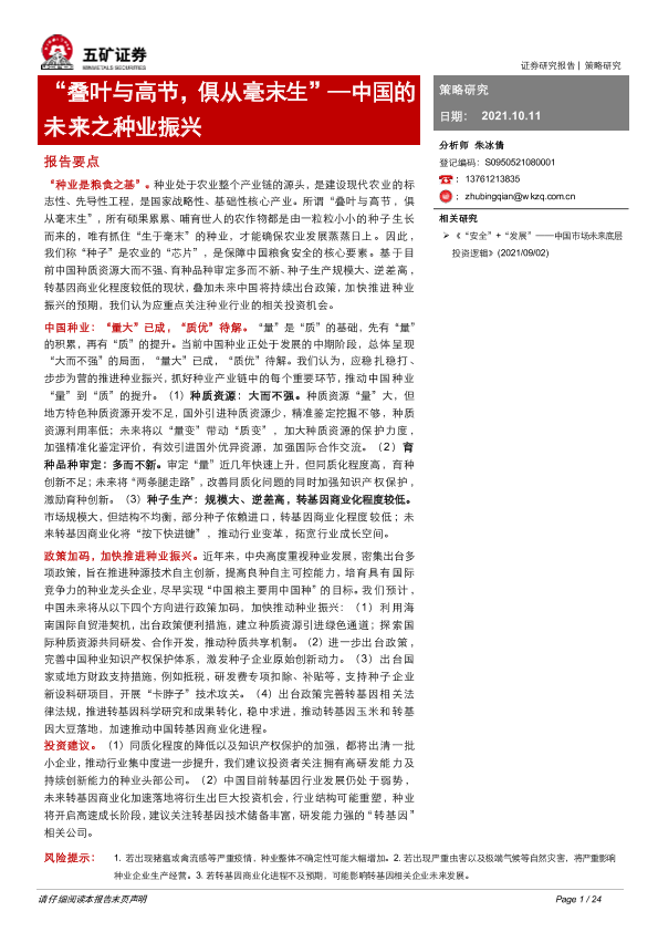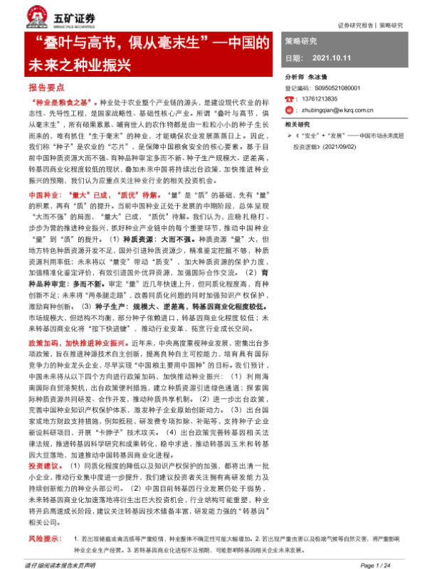【五矿证券】【20211011】中国的未来之种业振兴:“叠叶与高节,俱从毫末生”-24页