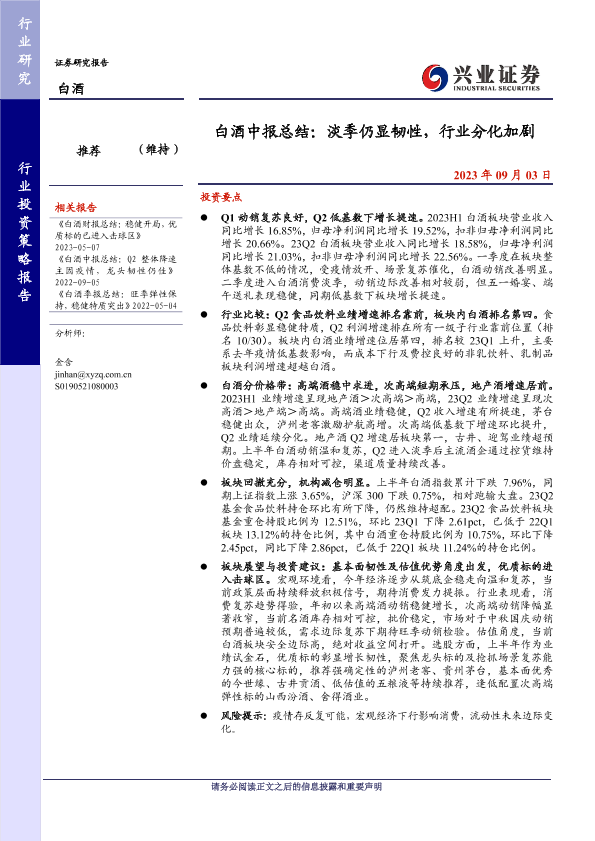 【兴业证券】【20230903】白酒行业中报总结:淡季仍显韧性,行业分化加剧-23页