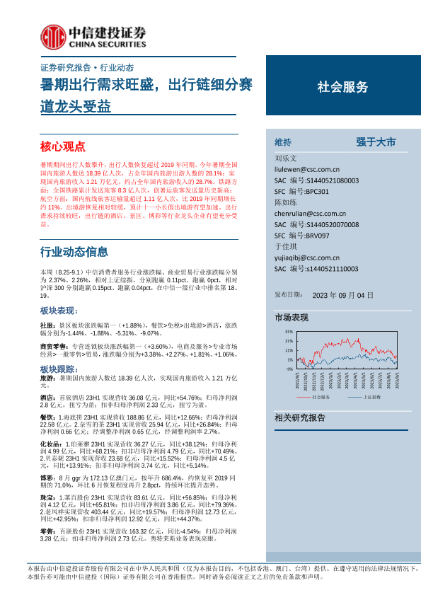 【中信建投证券】【20230904】社会服务行业:暑期出行需求旺盛,出行链细分赛道龙头受益-30页