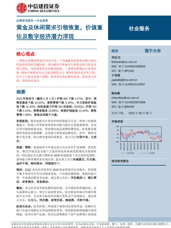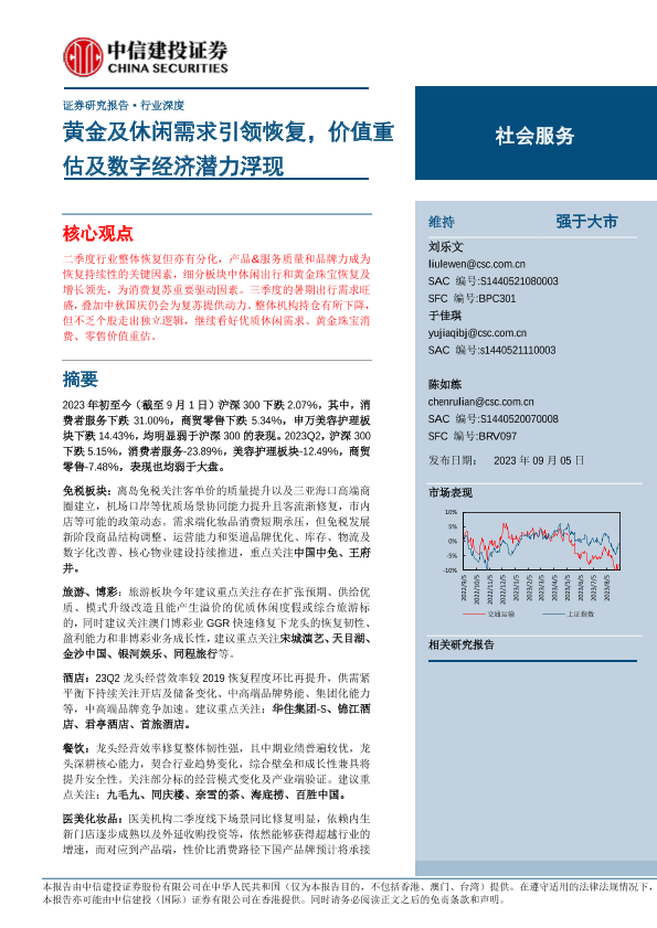 【中信建投证券】【20230905】社会服务行业:黄金及休闲需求引领恢复,价值重估及数字经济潜力浮现-49页