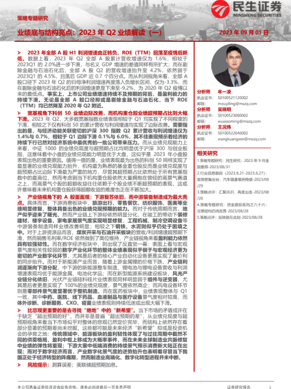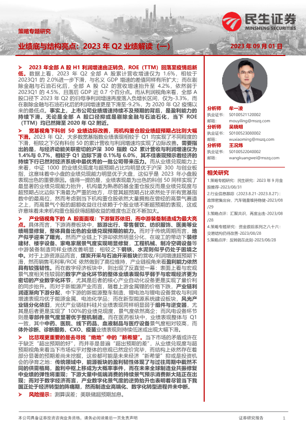 【民生证券】【20230901】策略专题研究:业绩底与结构亮点,2023年Q2业绩解读(一)-36页