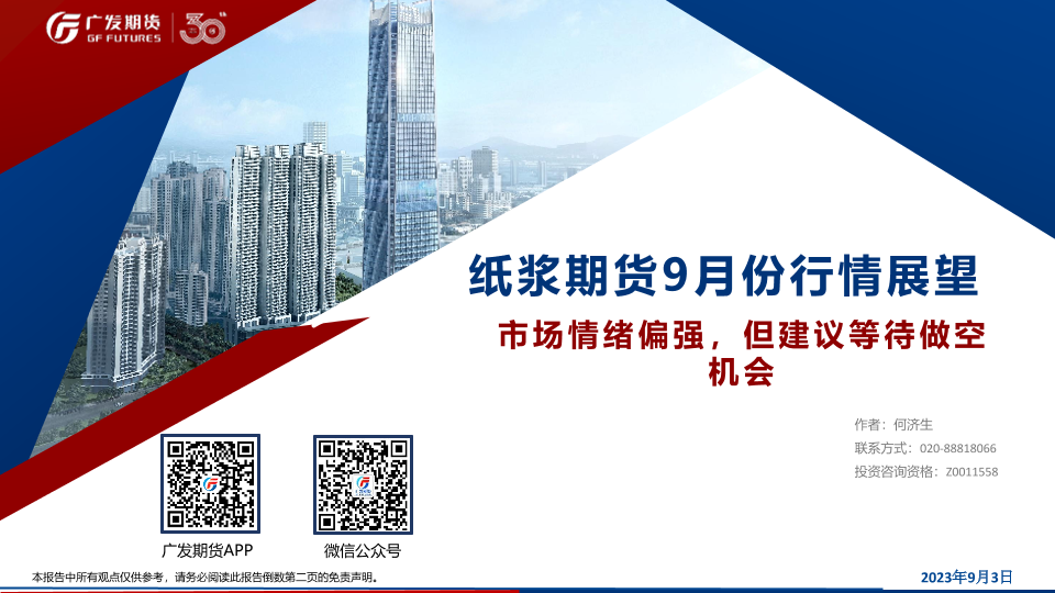 【广发期货】【20230903】纸浆期货9月份行情展望:市场情绪偏强,但建议等待做空机会-21页