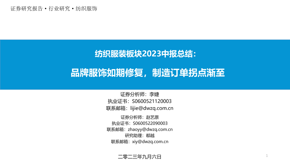 【东吴证券】【20230906】纺织服装行业板块2023中报总结:品牌服饰如期修复,制造订单拐点渐至-39页